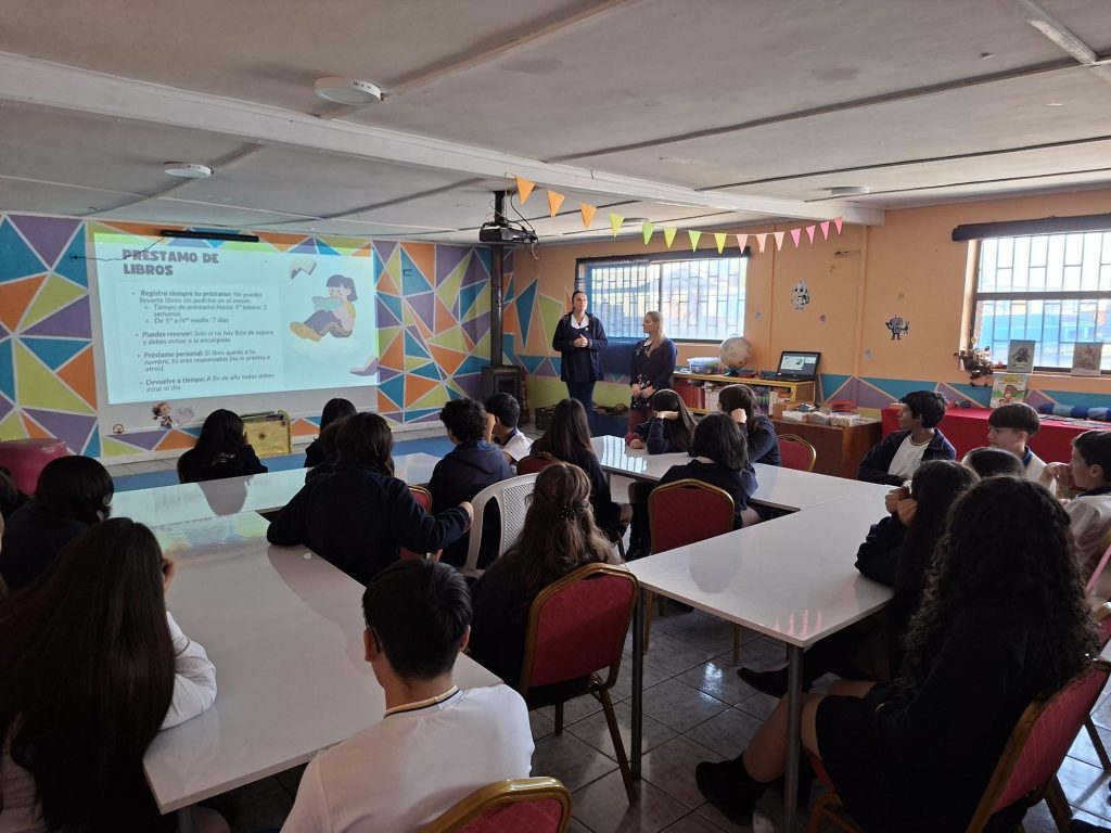 Con compromiso por parte de los estudiante, se desarrolló la charla de Formación de Usuarios CRA, instancia en la que participaron cursos de enseñanza básica y media. Esta actividad, enmarcada en el Plan de fortalecimiento de la Biblioteca CRA, tuvo como propósito principal desarrollar en los estudiantes habilidades para el uso adecuado de este espacio, promoviendo el acceso responsable a los recursos bibliográficos y fomentando una relación cercana y significativa con la lectura. Durante la jornada, los estudiantes conocieron el funcionamiento del sistema de préstamos, las normas de uso de la biblioteca y la organización de los textos. La alta participación evidencia el interés de los estudiantes por integrarse activamente en el uso de la biblioteca, así como su disposición a asumir roles de liderazgo, como encargados de CRA en sus cursos, apoyando a sus compañeros y promoviendo iniciativas de fomento lector. Formar estudiantes interesados en la lectura es un desafío fundamental para nuestro colegio, ya que fortalece habilidades cognitivas y comunicativas, amplía el mundo de los estudiantes, desarrolla el pensamiento crítico y favorece la autonomía en el aprendizaje. En este sentido, iniciativas como esta charla constituyen un paso significativo para construir una comunidad lectora activa, comprometida y consciente del valor de los libros en su formación integral. Sin duda, este tipo de instancias seguirá potenciándose, consolidando a la Biblioteca CRA como un espacio dinámico, participativo y clave en el desarrollo educativo de nuestros estudiantes.