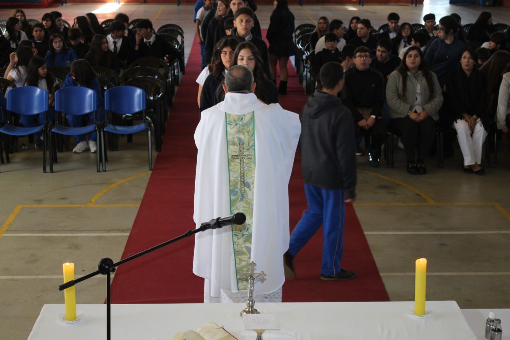 Como ya es habitual en nuestra comunidad educativas, el jueves 26 de marzo, nos congregamos en el gimnasio de nuestro colegio para celebrar la Misa de inicio de año escolar, con el objetivo de poner en manos de Dios el quehacer académico de este año 2026. Esta celebración fue presidida por el presbítero Sergio Ortega Ortega y participaron directivos, docentes asistentes de la educación y estudiantes desde séptimo hasta cuarto medio que profesan la fe católica. En su homilía, el padre Sergio nos invitó a buscar a Dios en las cosas cotidianas de la vida y vivir las enseñanzas de Cristo en nuestro propio ambiente, ya sea en el colegio como en nuestros hogares. También hizo la invitación a participar de las actividades religiosas de Semana Santa, comenzando por el Domingo de Ramos. Agradecemos la excelente disposición de quienes participaron en la celebración, y confiamos que Dios nos concederá a todos un próspero año escolar 2026.